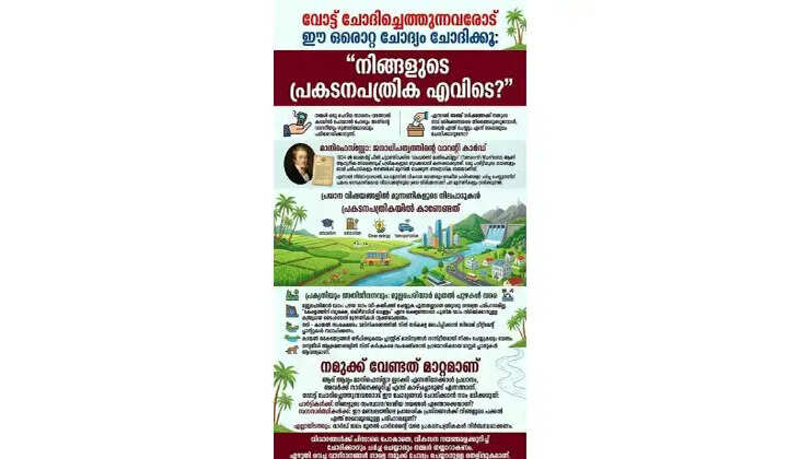 വിവാദങ്ങൾക്ക് പിന്നാലെ പോകാതെ, വികസന നയങ്ങളെക്കുറിച്ച് ചോദിക്കാനും ചർച്ച ചെയ്യാനും നമ്മൾ തയ്യാറാകണം. എഴുതി വെച്ച വാഗ്ദാനങ്ങൾ നാളെ നമുക്ക് ചോദ്യം ചെയ്യാനുള്ള തെളിവുകളാണ്. വോട്ട് ചോദിച്ചെത്തുന്നവരോട് ആത്മവിശ്വാസത്തോടെ ചോദിക്കുക: "നിങ്ങളുടെ പ്രകടനപത്രിക എവിടെ?"