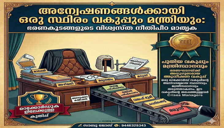 > കേരളത്തിലെ ഭരണചരിത്രത്തിൽ ജുഡീഷ്യൽ അന്വേഷണങ്ങൾ പുതിയൊരു ഘട്ടത്തിലേക്ക് കടക്കുകയാണ്. വിവാദങ്ങൾ ഉണ്ടാകുമ്പോൾ അന്വേഷണ കമ്മീഷനുകളെ നിയമിക്കുന്നത് സ്വാഭാവികമാണെങ്കിലും, അടുത്ത കാലത്തായി ഒരേ വ്യക്തി തന്നെ തുടർച്ചയായി വൈവിധ്യമാർന്ന വിഷയങ്ങളിൽ അന്വേഷണത്തിന് നേതൃത്വം നൽകുന്ന വിസ്മയിപ്പിക്കുന്ന കാഴ്ചയാണ് നമ്മൾ കാണുന്നത്. ഈ പശ്ചാത്തലത്തിൽ, ജുഡീഷ്യൽ അന്വേഷണങ്ങൾക്കായി ഒരു പ്രത്യേക വകുപ്പ് തന്നെ രൂപീകരിക്കേണ്ട കാലം അതിക്രമിച്ചിരിക്കുന്നു.