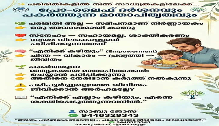 പരിമിതികളില് നിന്ന് സാധ്യതകളിലേക്ക്..പ്രൊ-ലൈഫ് ദര്ശനവും പകര്ത്തുന്ന മാതാപിതൃത്വവും