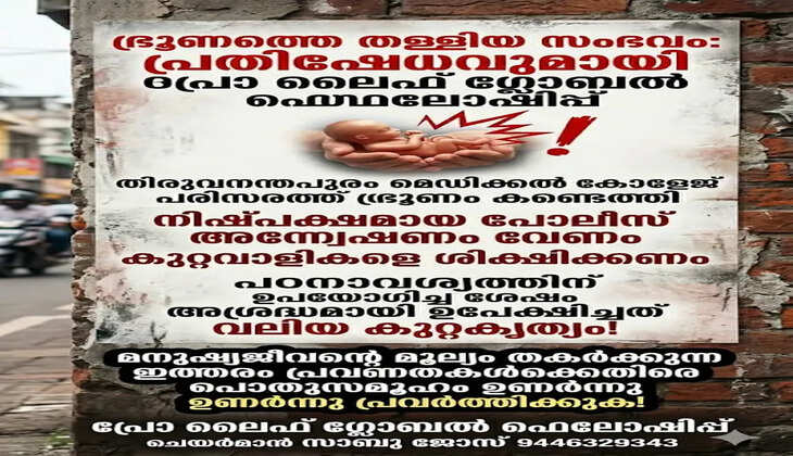 മെഡിക്കൽ കോളേജ് പരിസരത്ത് ഭ്രൂണം കണ്ടെത്തിയ സംഭവം: ശക്തമായ പ്രതിഷേധവുമായി പ്രൊ ലൈഫ് ഗ്ലോബൽ ഫെലോഷിപ്പ്