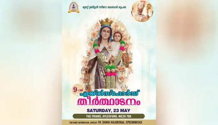 ബ്രിട്ടനിലെ സീറോ മലബാര് വിശ്വാസികളുടെ ഏറ്റവും വലിയ തീര്ത്ഥാടനമായി മാറിക്കഴിഞ്ഞിരിക്കുന്ന എയ്ല്സ്ഫോര്ഡ് മരിയന് തീര്ത്ഥാടനം ഈ വര്ഷം മെയ് 23ന് നടക്കും.
