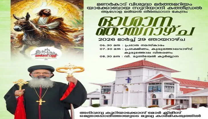 ആഗോള മരിയൻ തീർത്ഥാടന കേന്ദ്രമായ മണർകാട് വിശുദ്ധ മർത്തമറിയം യാക്കോബായ സുറിയാനി കത്തീഡ്രലിൽ ലോക രക്ഷകനായ യേശുമിശിഹായുടെ രാജാകിയമായ യെരുശലേം പ്രവേശനത്തിന്റെ ഓർമ്മ പുതുക്കി ഓശാന പെരുന്നാൾ നാളെ.